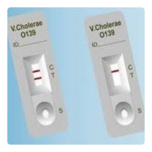 In well-developed settings, most healthcare providers rely on the results from the stool culture and rapid tests like the Crystal VC Rapid Diagnostic Test , which detects Vibrio cholera bacteria in stool samples. In areas where cholera is endemic, rapid immunochromatographic dipstick testing is often available. This involves placing a dipstick strip into a stool sample and then reading the lines it displays. Cholera is confirmed if two red lines appear on the stick. This usually takes between 2-15 minutes for the test to make a diagnosis. There are two surface antigens for Vibrio Cholera, which is responsible for cholera epidemics. They are known as serogroup O1 and serogroup O139.