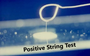 Vibrio cholerae will have an extensive string that makes it distinctive and, therefore a positive test. It can be concluded that a specimen is not Vibrio cholerae and therefore has a negative test if no string is formed.